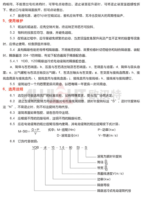 該產(chǎn)品是供具有可燃性氣體、瓦斯、粉塵等形成的爆炸性混合物環(huán)境下帶式輸送機(jī)所使用的驅(qū)動(dòng)裝置。產(chǎn)品嚴(yán)格執(zhí)行JB/T7330-08《電動(dòng)滾筒》標(biāo)準(zhǔn)。隔爆性能符合GB3836.1-2000《爆炸性氣體環(huán)境用電氣設(shè)備、通用要求》、GB3836.2-2000《爆炸氣體環(huán)境用電氣設(shè)備,隔爆型"d"》的規(guī)定。隔爆標(biāo)志為dl、dllAT4、DllBT4。dl適合于所有甲烷或煤塵爆炸危險(xiǎn)性混合物存在的礦井中。